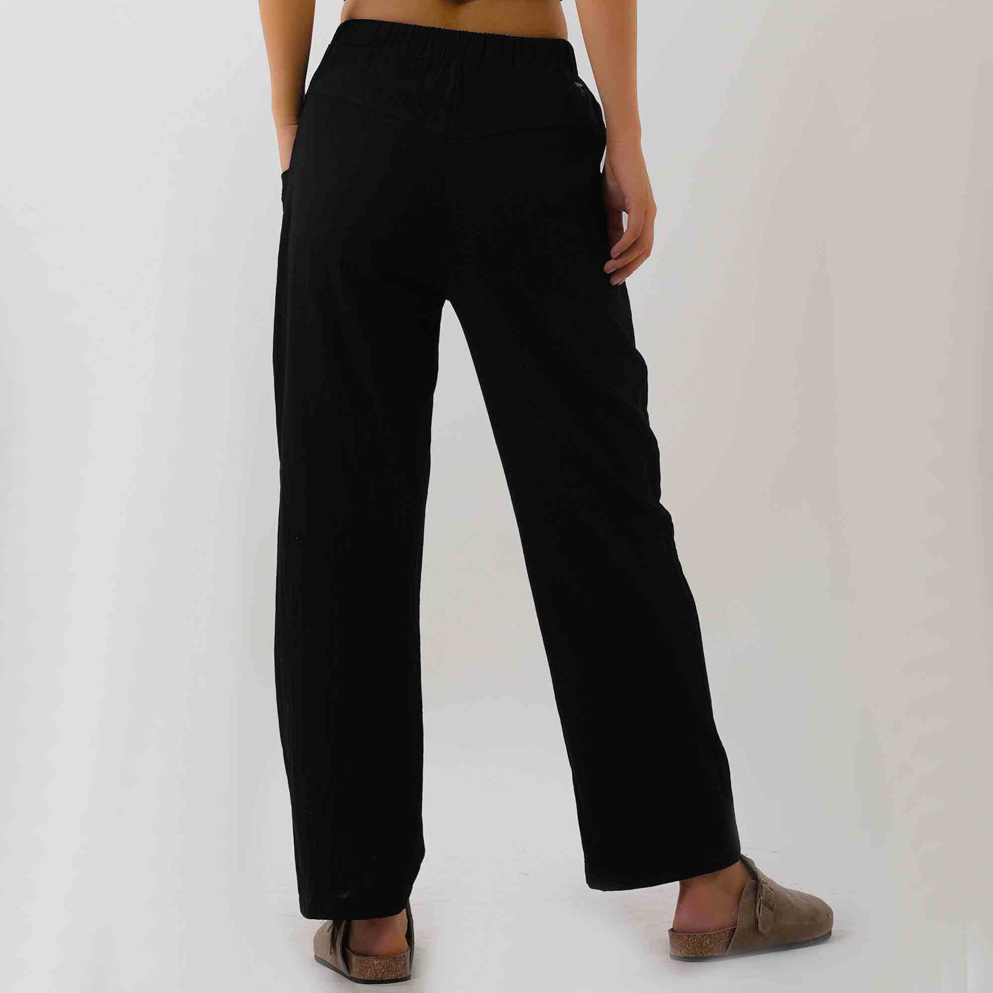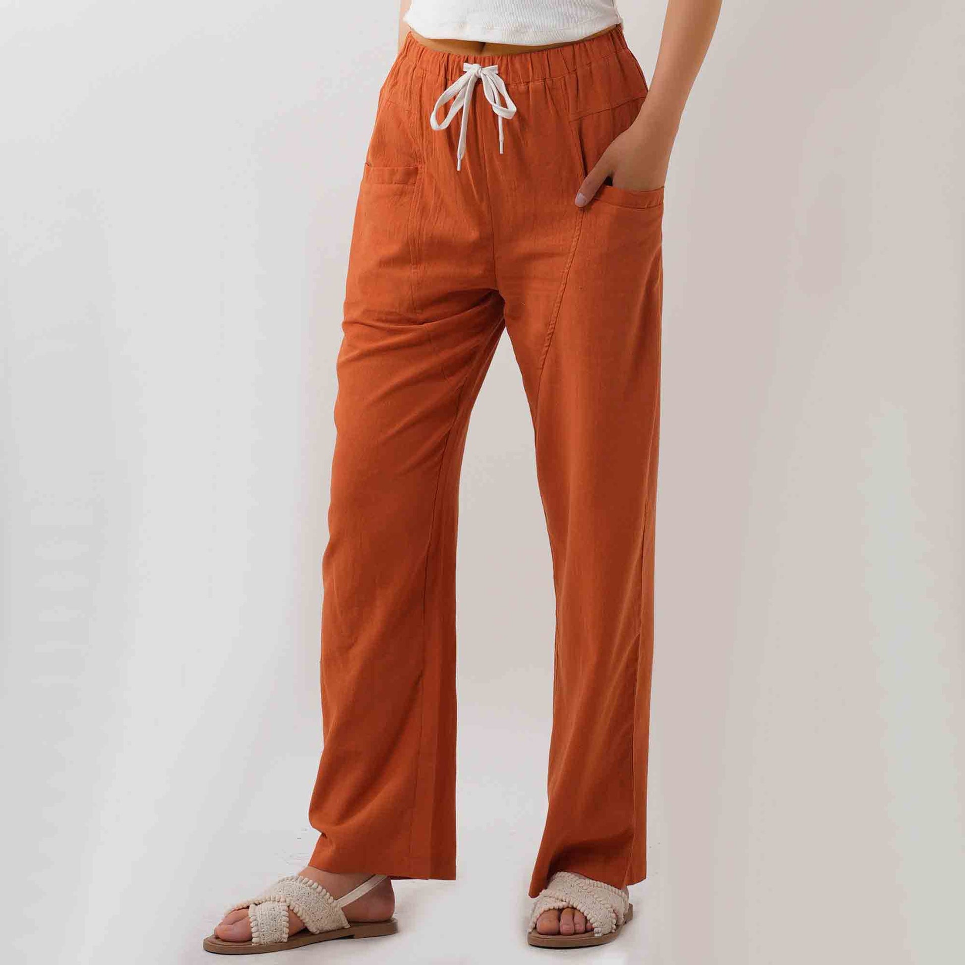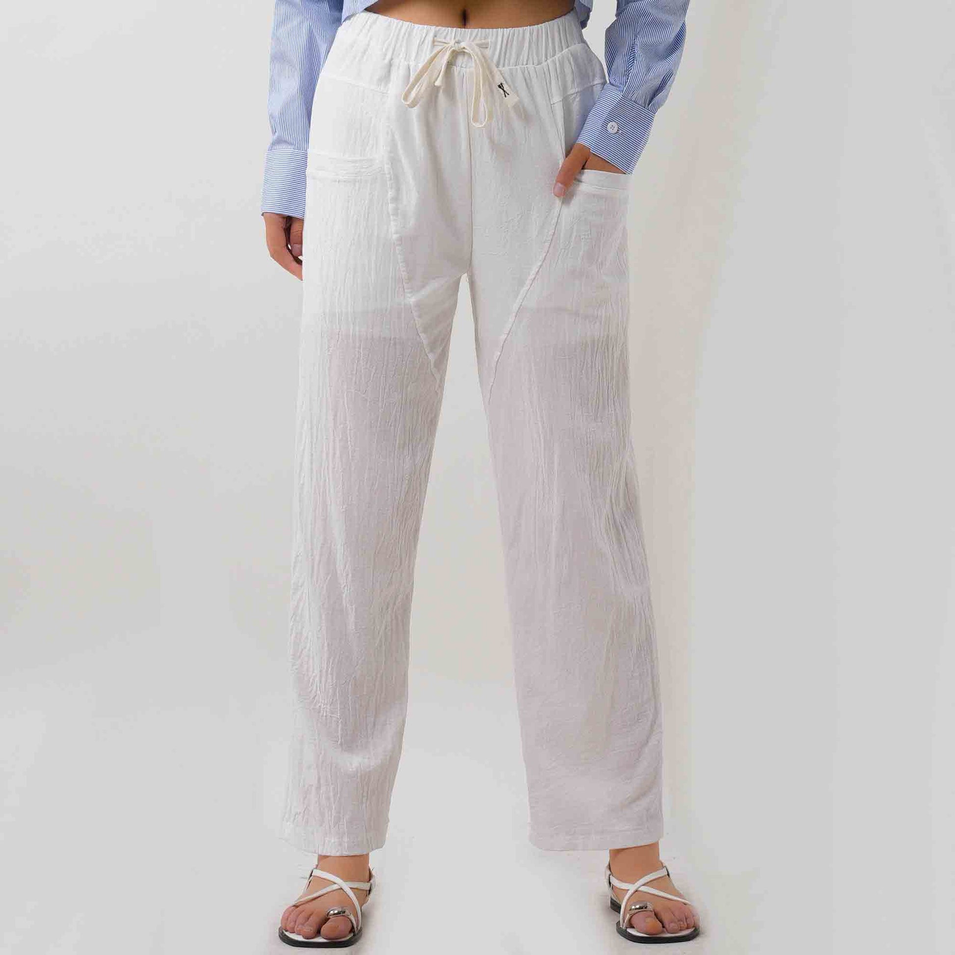 Experience all-day comfort with these 100% cotton women's pants, designed for effortless casual wear. Featuring a comfortable high elastic waistband and roomy front pockets, these pants combine practicality with laid-back style.