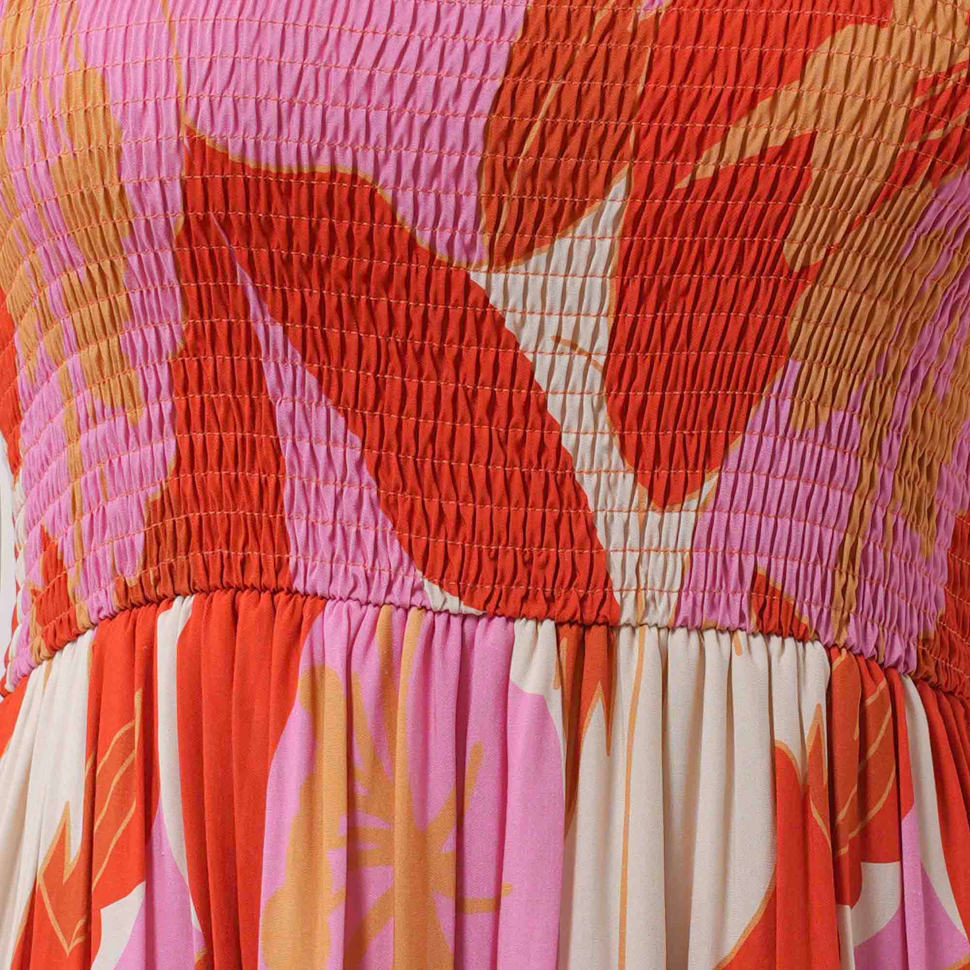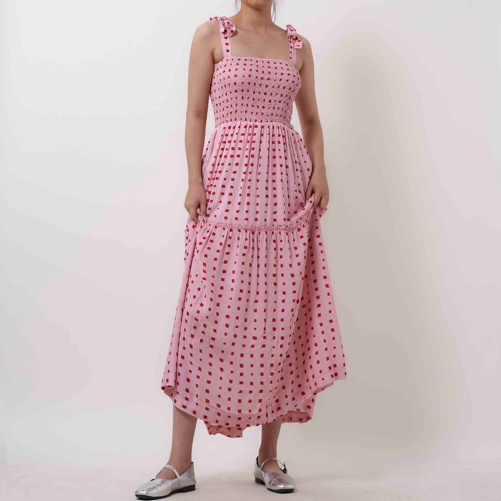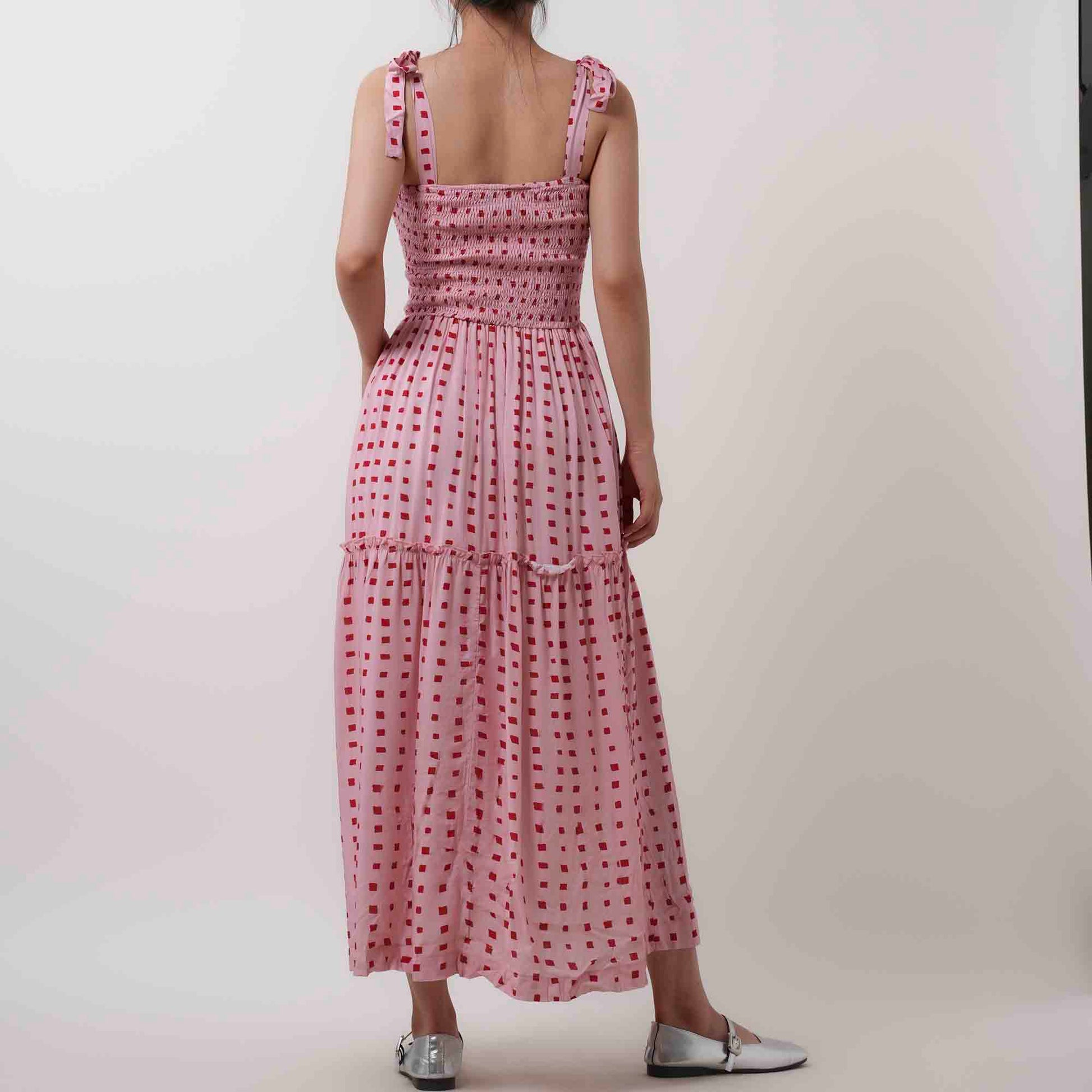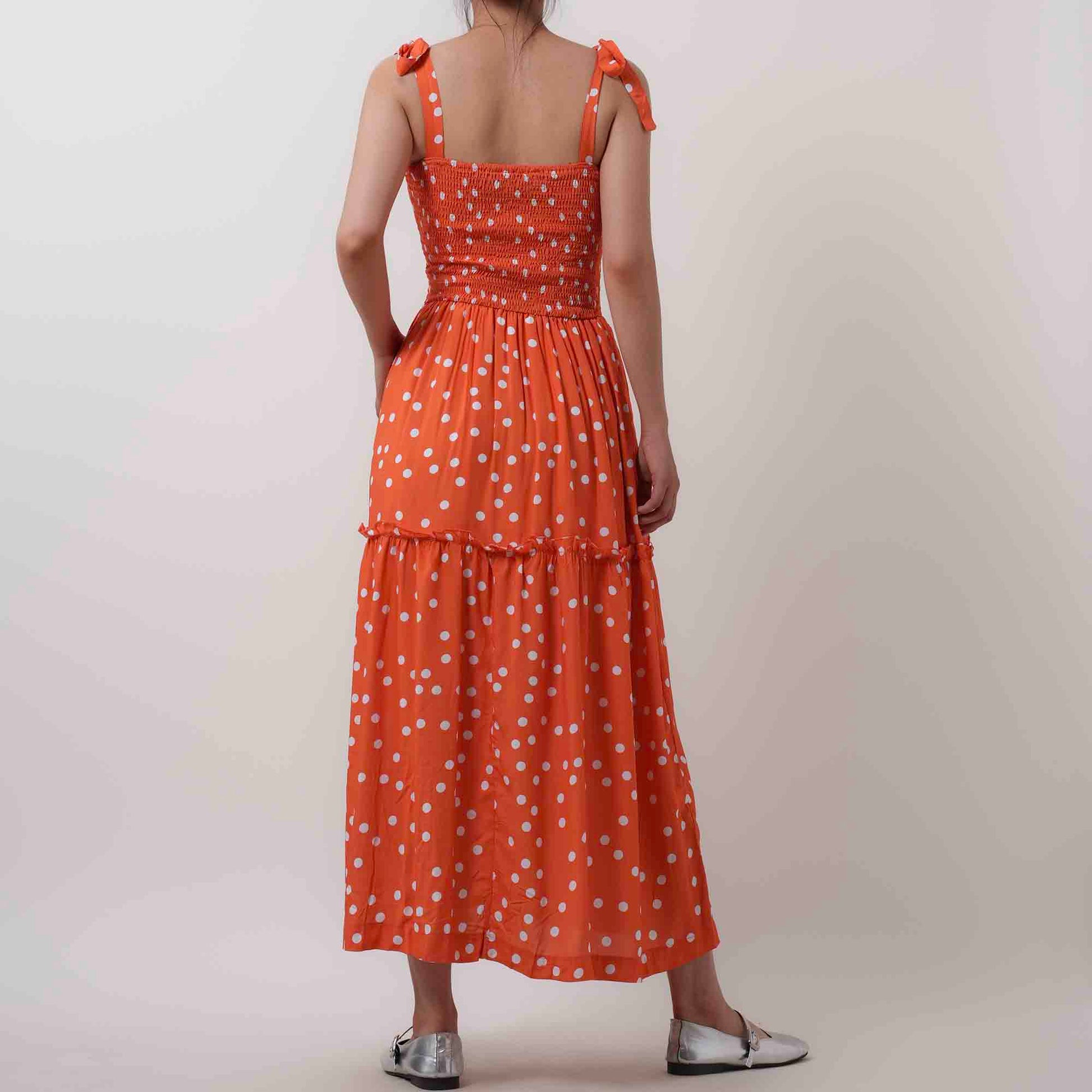 Embrace effortless style with this flowy rayon maxi dress, featuring a vibrant floral/dot digital print that softens beautifully after first wash. The adjustable shoulder ties and smocked top create a customizable fit, while the 100% polyester lining ensures smooth coverage and comfort.