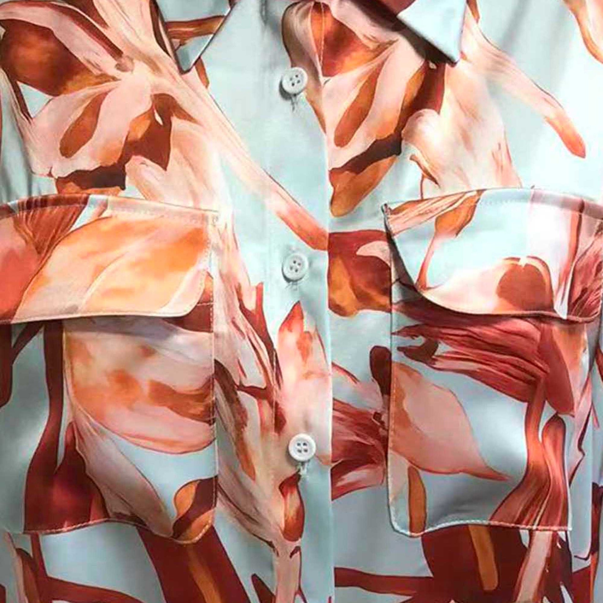Bring crisp sophistication to your wardrobe with the Cherie Code Blue Stripe Button‑Front Shirt. Crafted from 100% polyester in a vivid multicolor print, this blouse features a classic turn‑down collar, long sleeves, and flap chest pockets for modern styling. With its casual yet polished fit, it effortlessly transitions from office hours to weekend outings.