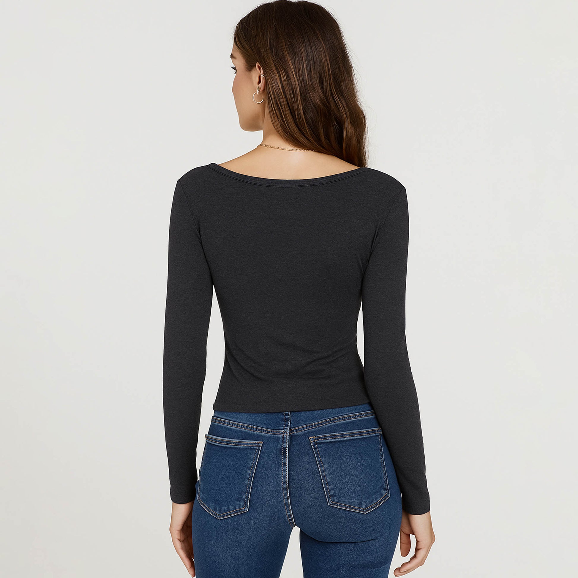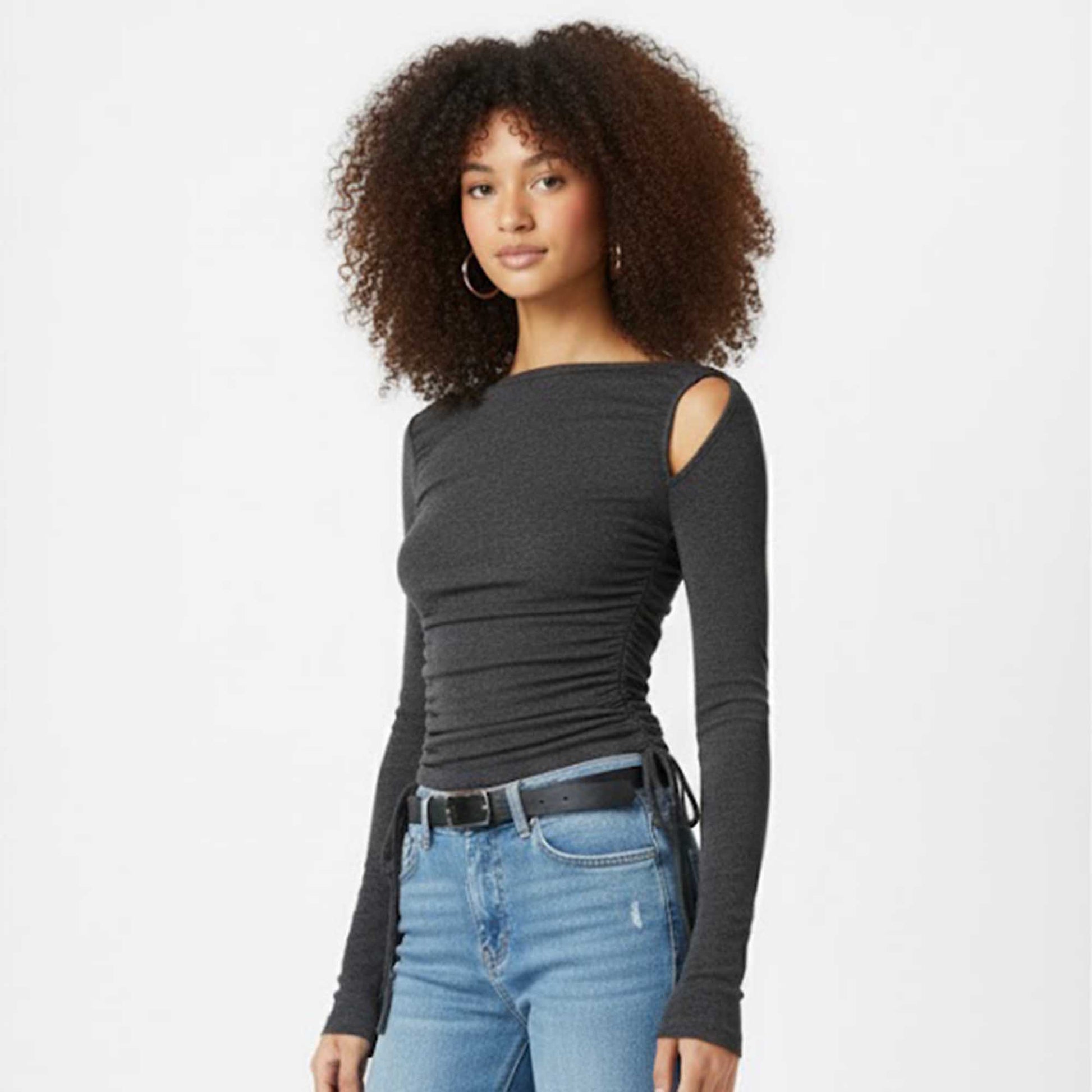 Cherie Code Women’s Cut-Out Top – Stretch Knit, Long Sleeve, Adjustable Ruched