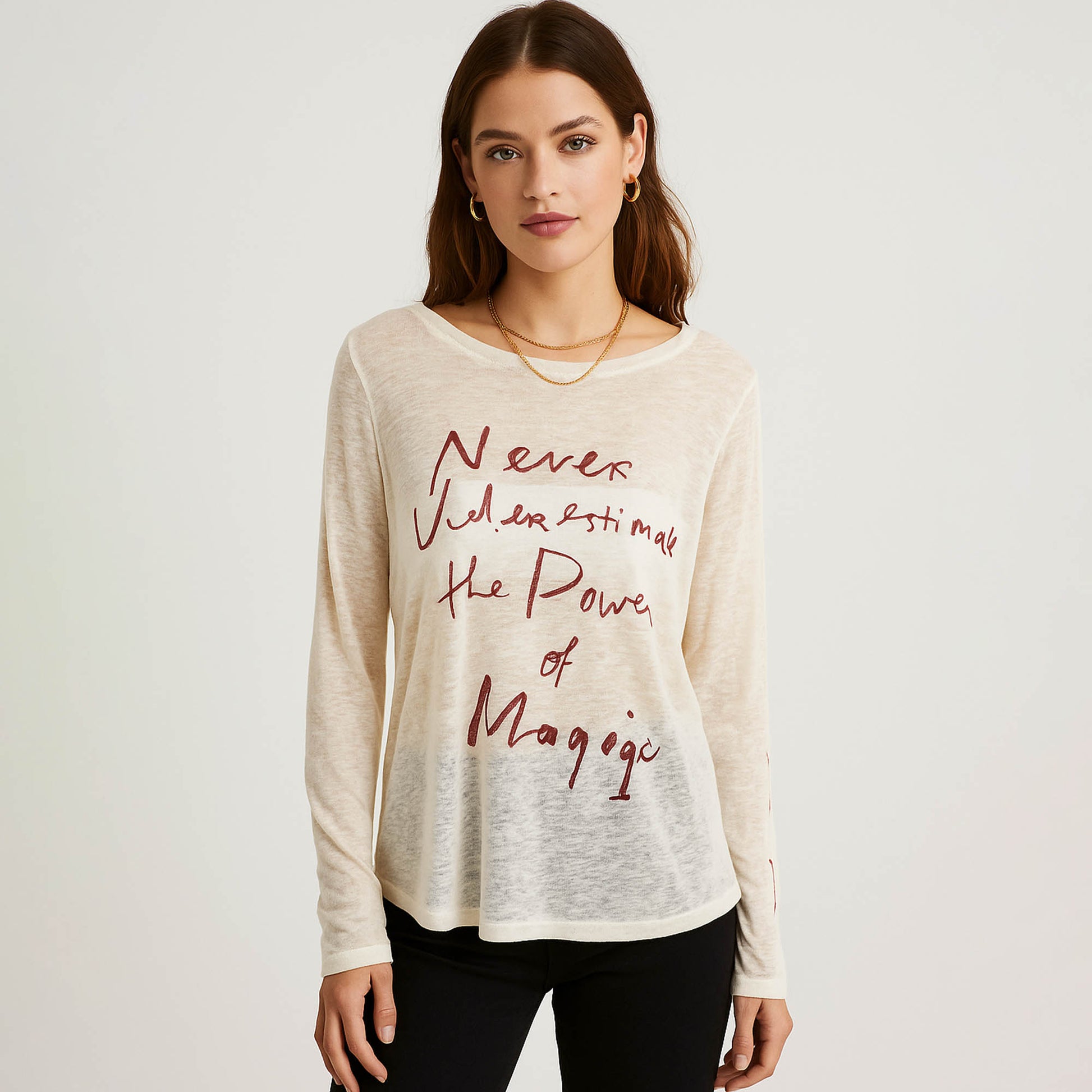 Cherie Code Women’s Graphic Tee – Slub Knit, Long Sleeve, Statement Print