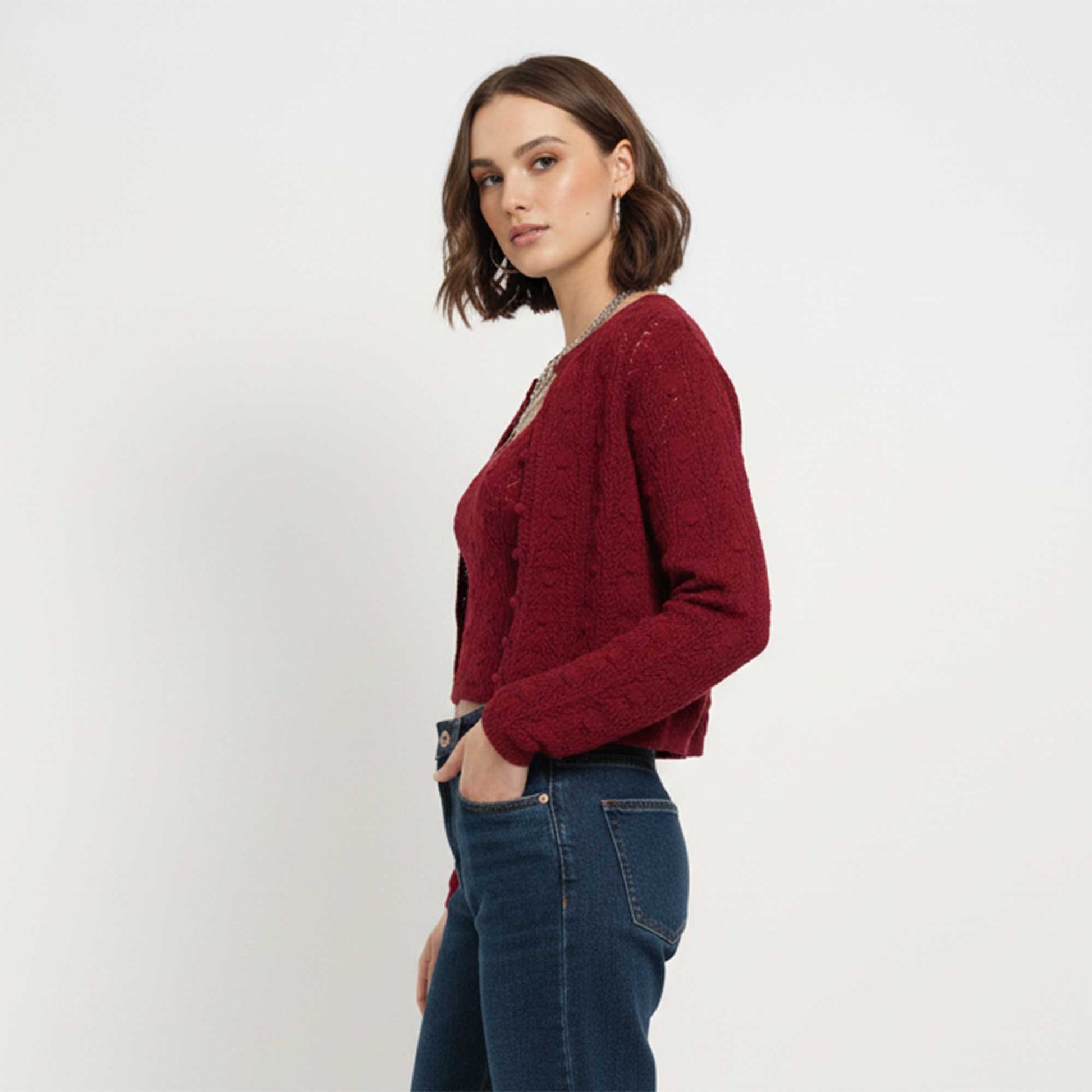 Cherie Code Women’s Open-Front Cardigan – Textured Knit, Long Sleeve, Cropped Fit