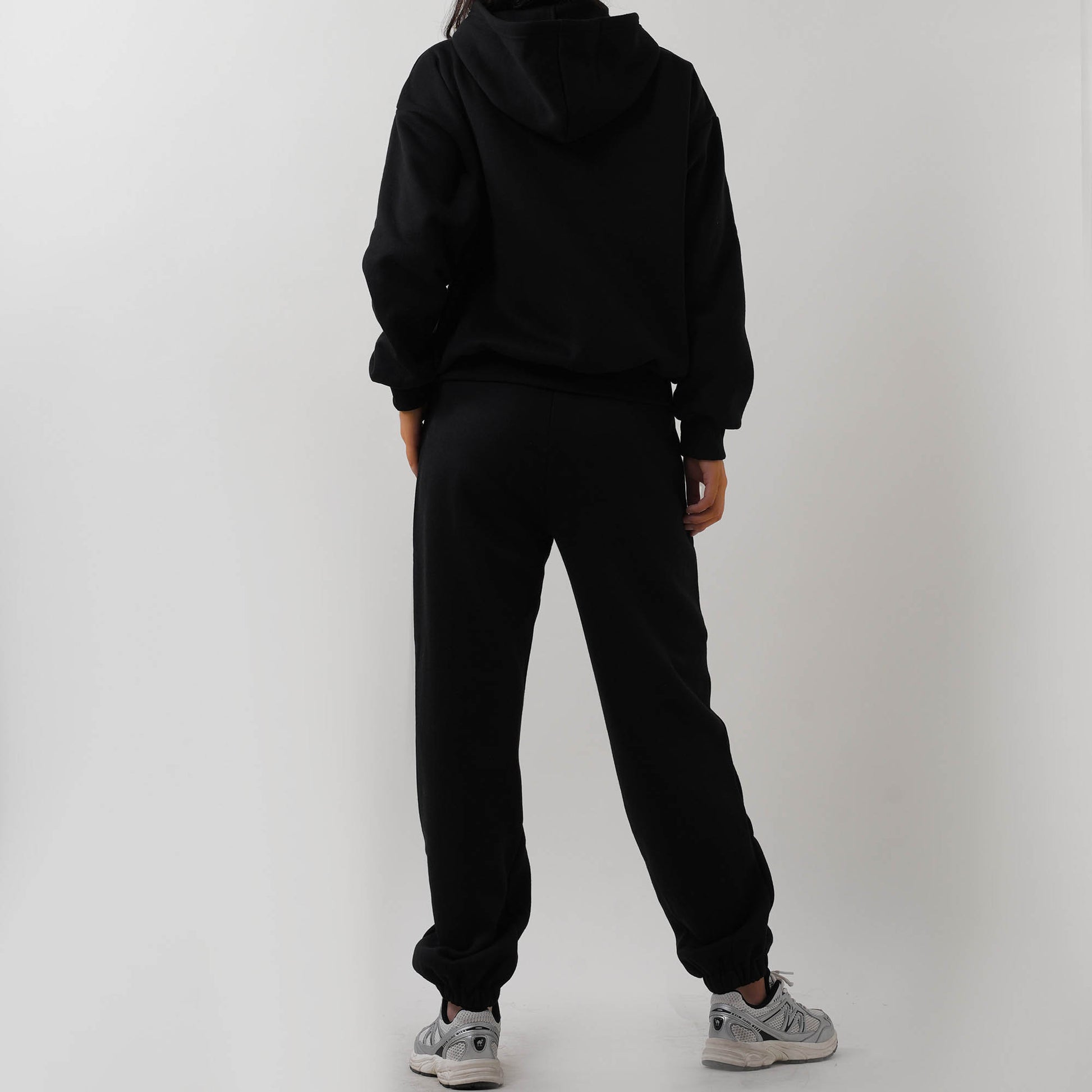 Cherie Code Women's Black Hoodie Lounge Set with Velvet Lining – Long Sleeve Top and Jogger Pants – Casual Fit