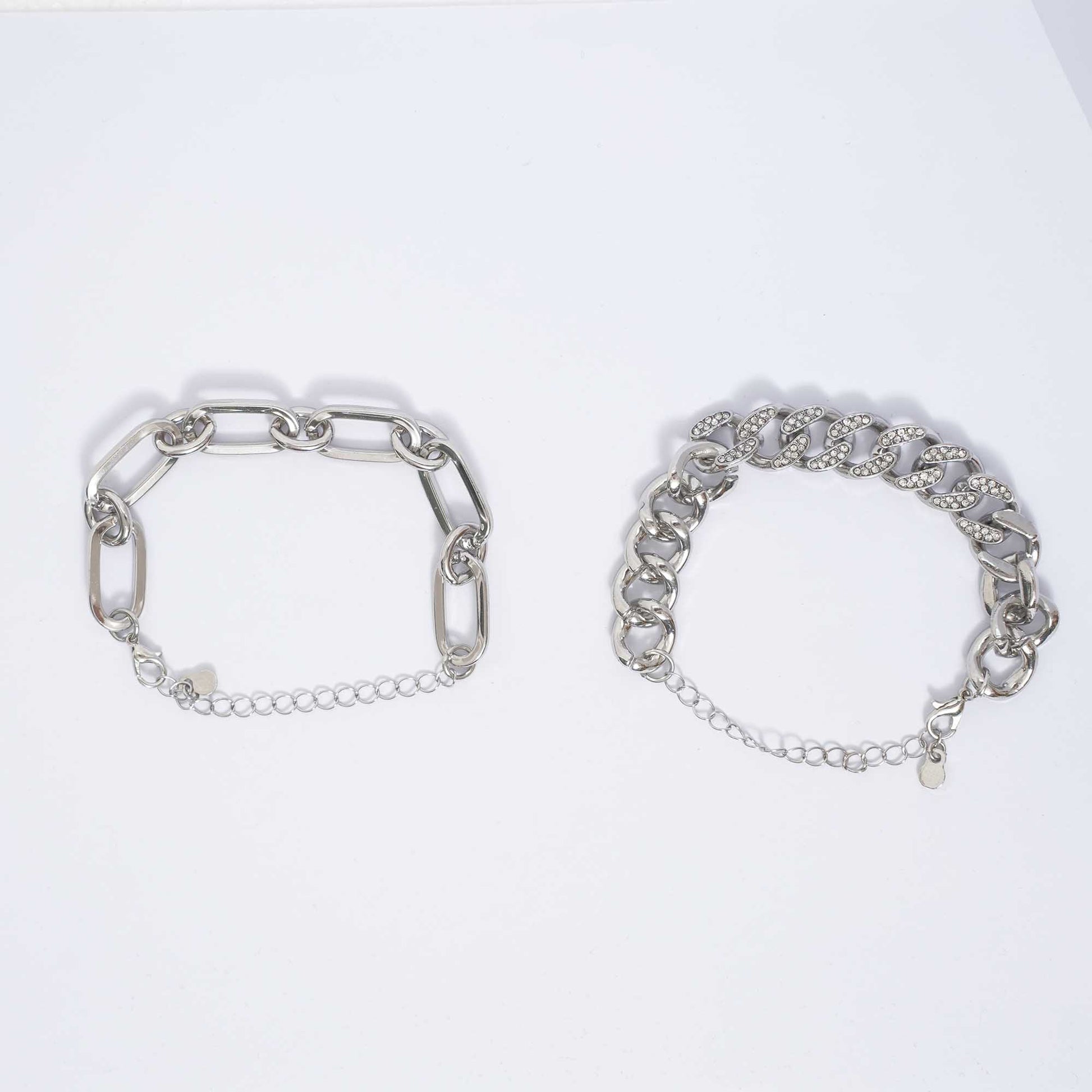 Women's 2-Piece Silver Chain Bracelet Set with Rhinestone Accents – Adjustable Layered Link Jewelry by Cherie Code