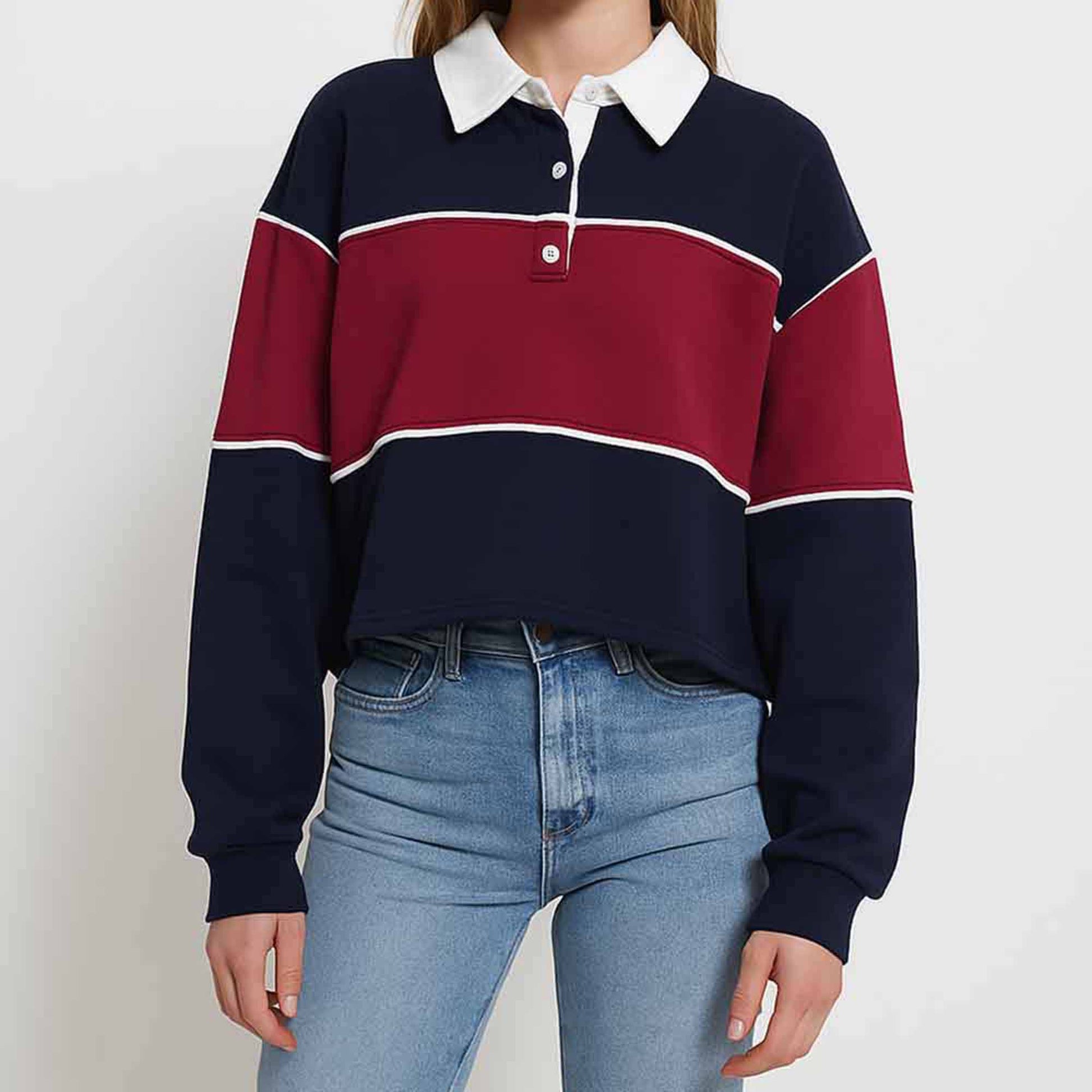 Women's Colorblock Polo Collar Long Sleeve Sweatshirt – Casual Pullover Top for Fall by Cherie Code