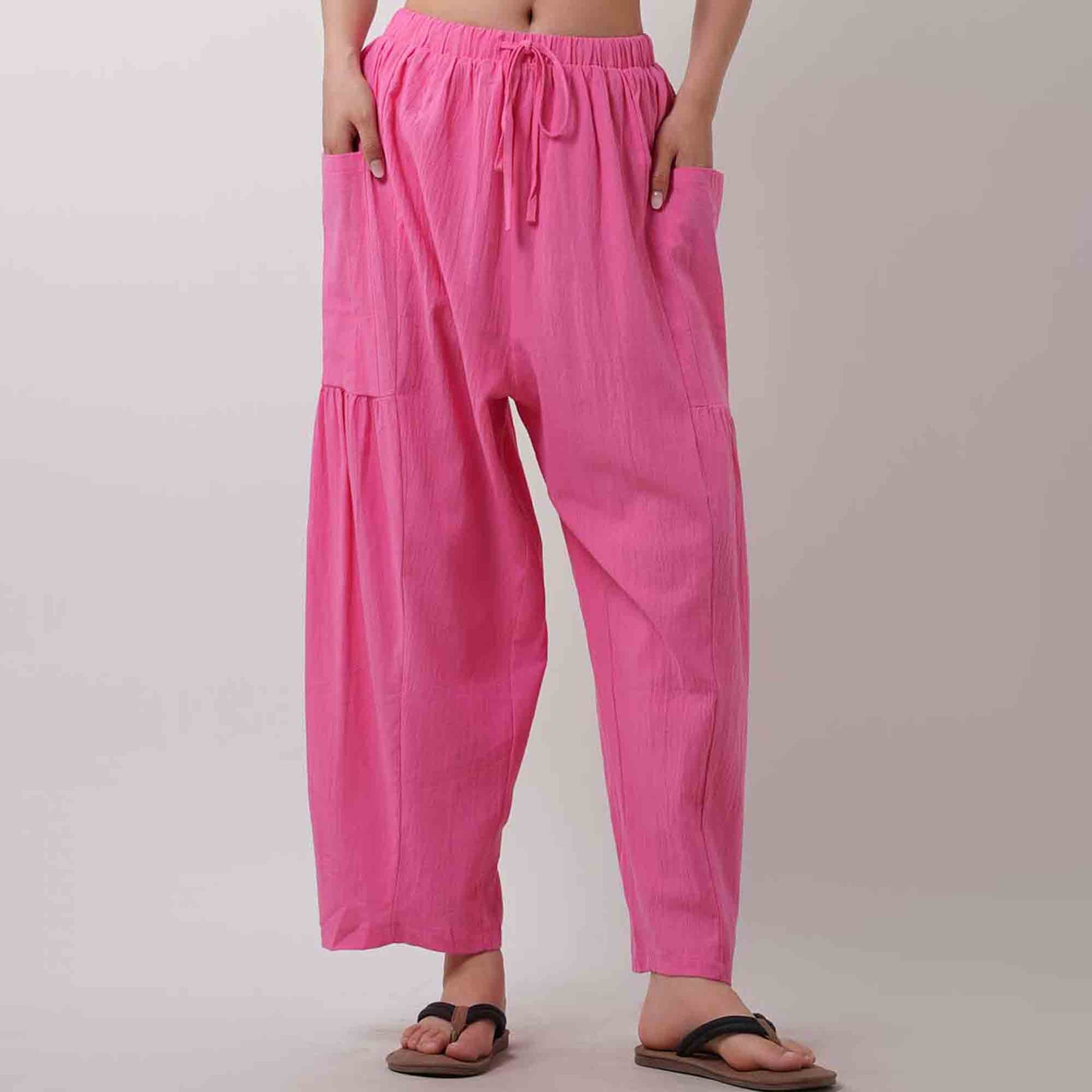 Women's Cotton Drawstring Pants - Relaxed Fit with Elastic Waist & Functional Pocket